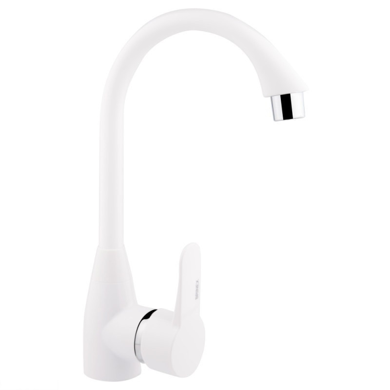 Змішувач для кухні Brinex 35W 007 виготовлений з ABS пластику. Має одноважільне управління, яке регулює напір холодної і гарячої води. Виконаний в сучасному, стриманому дизайні з білою матовою поверхнею. Такий змішувач можна назвати універсальним і буде ідеально виглядати в будь-якому інтер'єрі кухні.